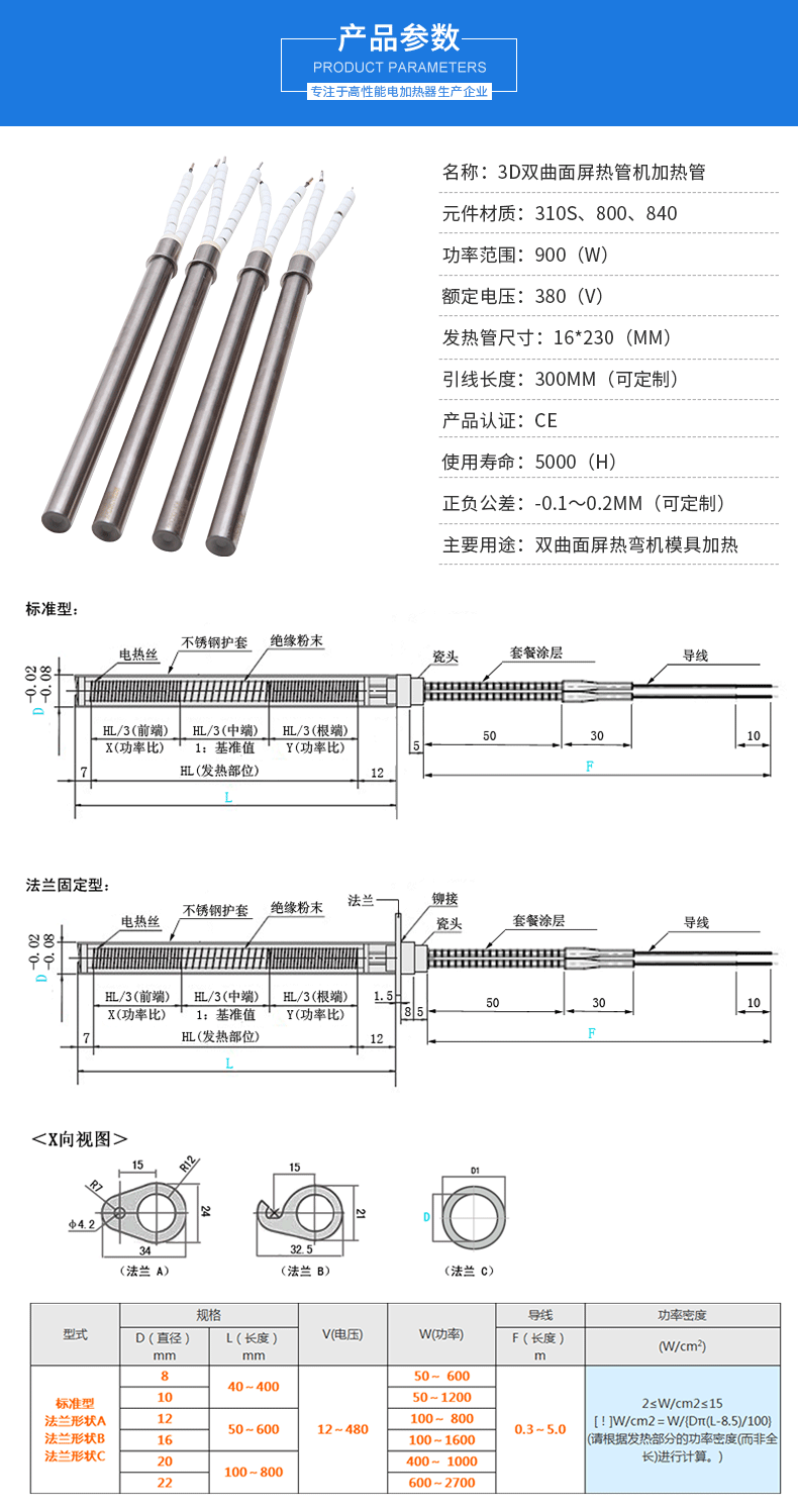 熱彎?rùn)C(jī)單頭電加熱管參數(shù):