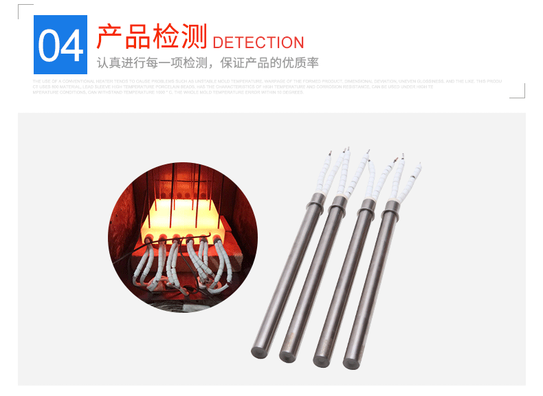 熱彎?rùn)C(jī)成型模具電加熱棒是根據(jù)客戶的高溫要求來(lái)設(shè)計(jì)生產(chǎn)的。客戶由于要求高溫條件下使用單頭電熱管,而在高溫條件下,單頭電熱管的高溫管會(huì)出現(xiàn)熔化現(xiàn)象,因此用瓷珠來(lái)代替高溫管,可以防止熔化,增長(zhǎng)使用壽命。深圳新宏大電熱科技有限公司根據(jù)20多年生產(chǎn)單頭加熱棒的經(jīng)驗(yàn)和技術(shù),專注研發(fā)生產(chǎn)優(yōu)質(zhì)高端熱彎?rùn)C(jī)模具用耐高溫單頭電加熱棒,并提供熱彎?rùn)C(jī)溫度均勻技術(shù)解決方案。